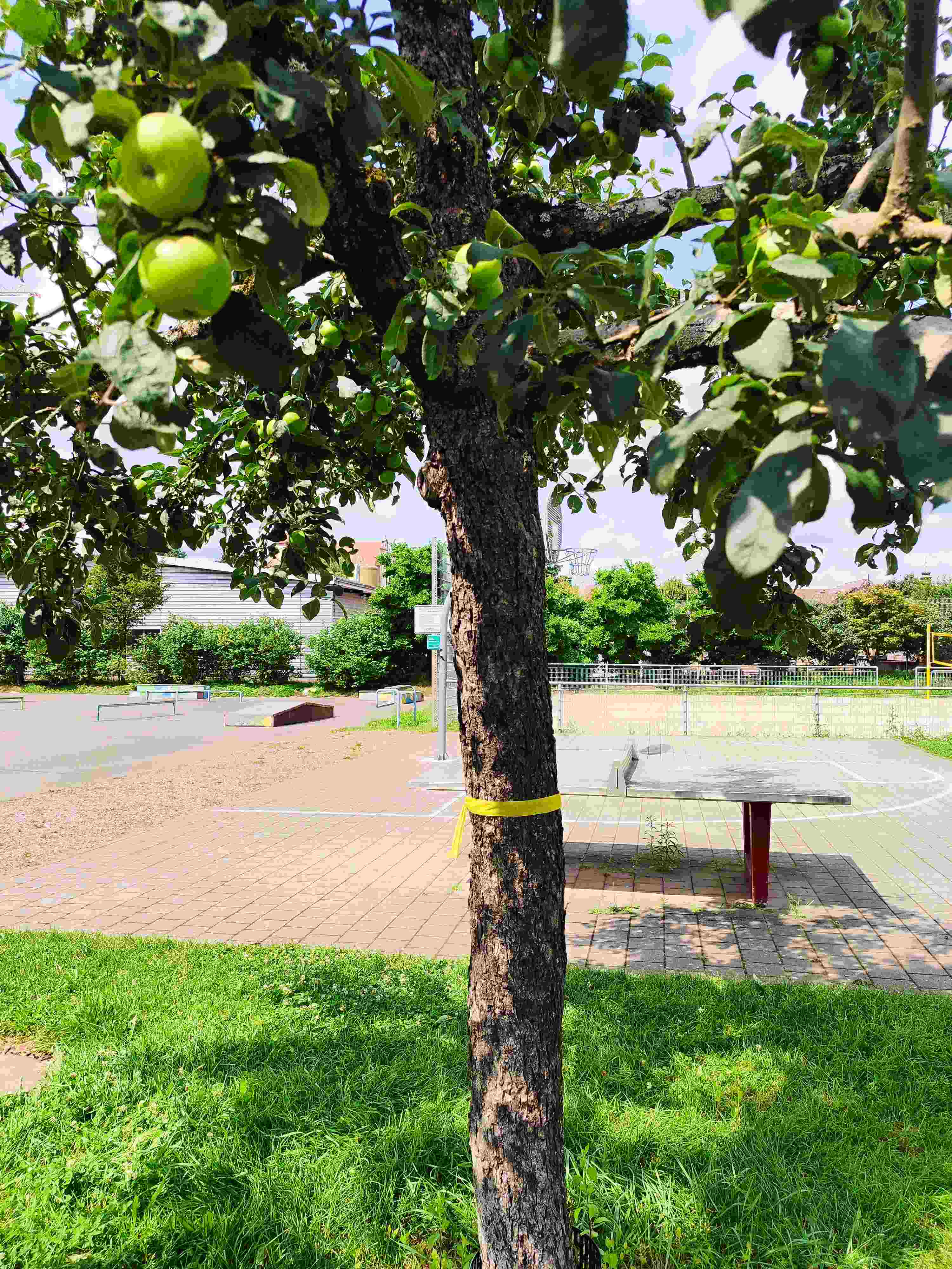 Auch in diesem Jahr markiert die Stadt Ettenheim ihre gemeindeeigenen Obstbäume mit gelben Bändern. Das gelbe Band signalisiert, dass das Obst dieses Baumes gratis und ohne Rücksprache geerntet werden darf – Naschen ist also ausdrücklich erlaubt. In Ettenheim können die rund 200 Apfelbäume dann, wenn das Obst reif ist, zur eigenen Verwendung abgeerntet werden.