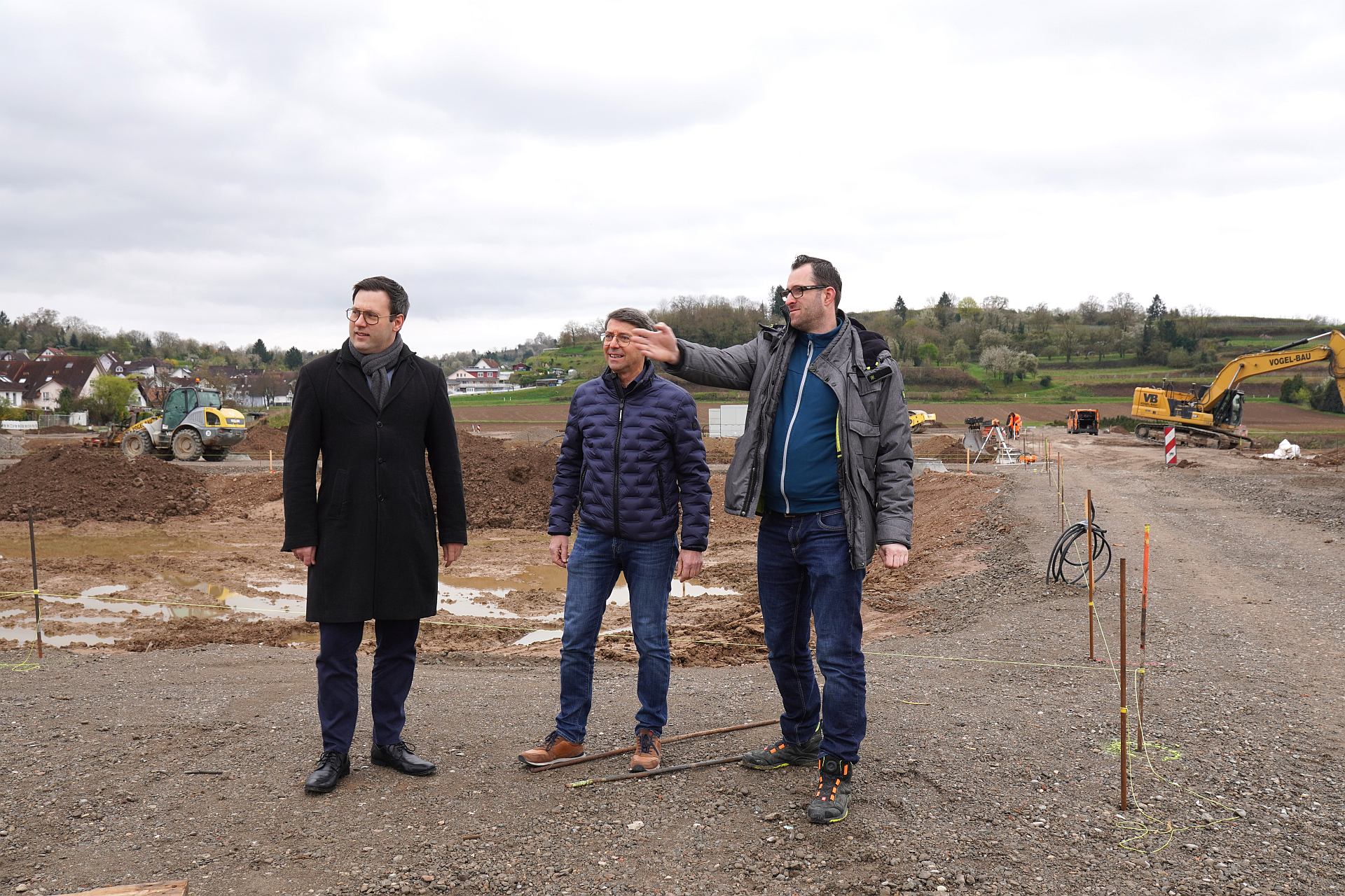Die Erschließungsarbeiten für das Baugebiet „Supperten II“ im Westen der Stadt kommen zügig voran und liegen aktuell vor dem ursprünglichen Zeitplan. Vor Ort machten sich Bürgermeister Bruno Metz, Bauamtsleiter Markus Schoor sowie Tiefbauamtsleiter Björn Zerr ein persönliches Bild über den Fortschritt der Bauarbeiten. „Die Erschließung verläuft sehr erfreulich. Wir liegen gut im Zeitplan und sind sehr froh, dass die Arbeiten so reibungslos verlaufen“, betonte Bürgermeister Metz. Gleichzeitig unterstrich er die weiterhin hohe Nachfrage nach Wohnraum in Ettenheim. Die große Resonanz bestätigt den Bedarf und die Attraktivität Ettenheims als Wohn- und Lebensort.