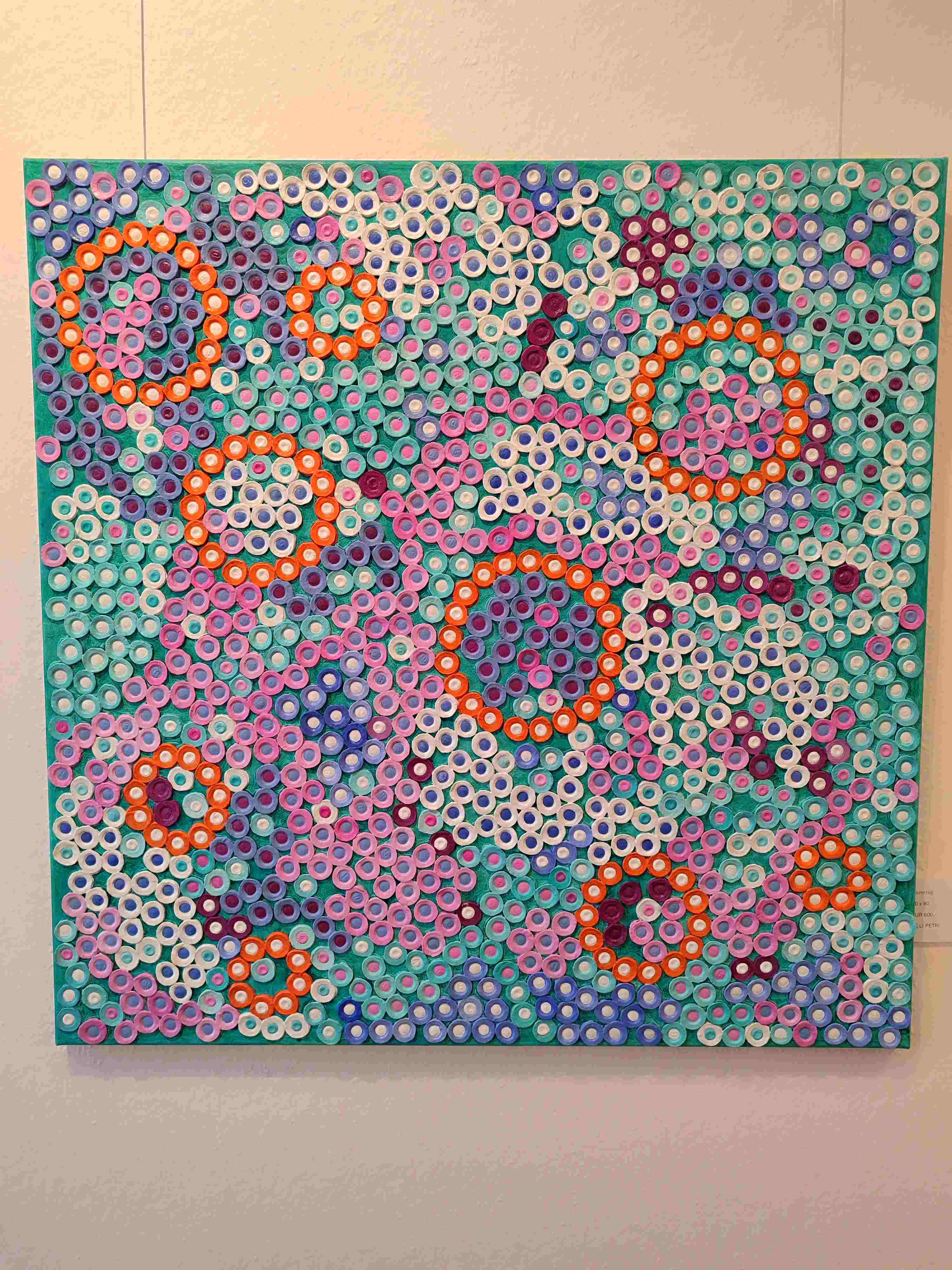 Mit „Kontrast und Harmonie“ präsentiert Lilli Petri eine einzigartige Herangehensweise an die bildende Kunst: Ihre Werke bestehen aus über 1000 einzeln bemalten und geformten Elementen, die aus Eierkartons gefertigt sind. Diese verwandelt sie durch präzises Handwerk und viel Geduld in detailreiche Strukturen, die in leuchtenden Farben strahlen. Die Motive – von Tieren über abstrakte Formen bis hin zu floralen Elementen – ziehen Betrachtende durch ihre Dynamik und die raffinierte Farbkomposition in ihren Bann.