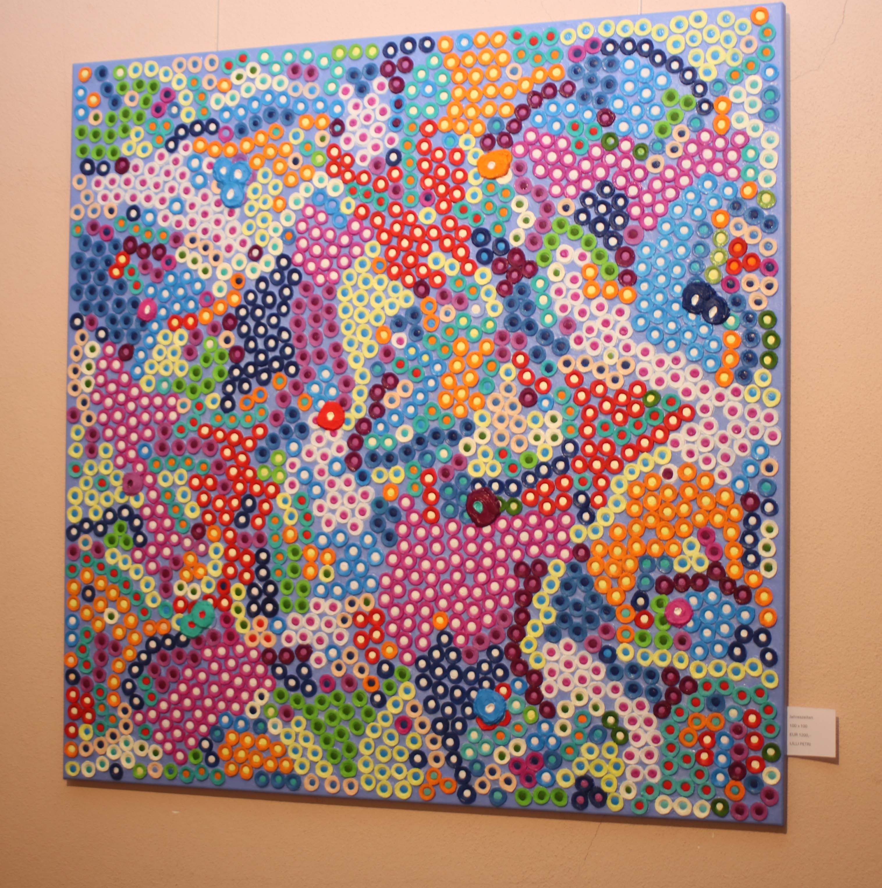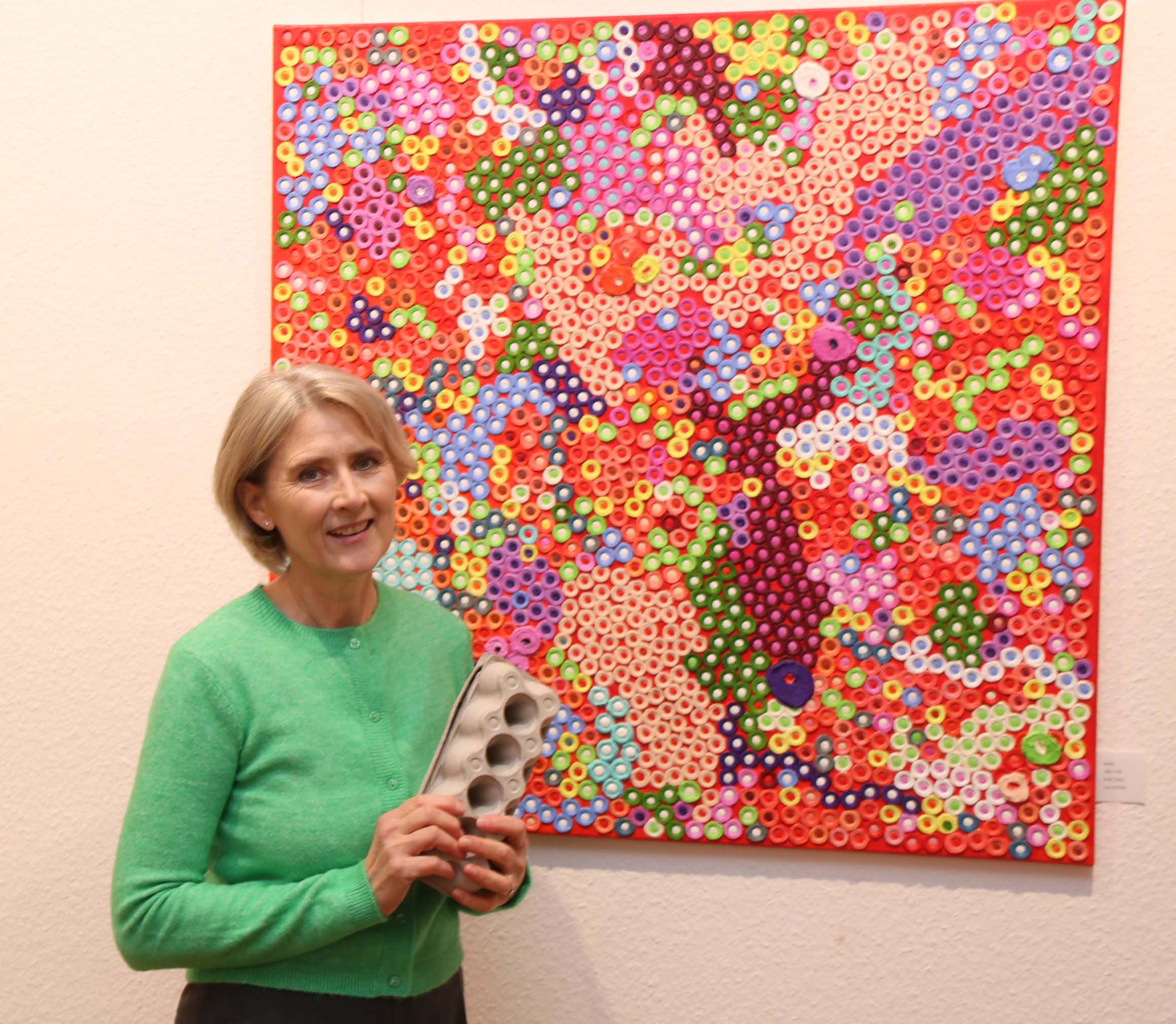 Mit „Kontrast und Harmonie“ präsentiert Lilli Petri eine einzigartige Herangehensweise an die bildende Kunst: Ihre Werke bestehen aus über 1000 einzeln bemalten und geformten Elementen, die aus Eierkartons gefertigt sind. Diese verwandelt sie durch präzises Handwerk und viel Geduld in detailreiche Strukturen, die in leuchtenden Farben strahlen. Die Motive – von Tieren über abstrakte Formen bis hin zu floralen Elementen – ziehen Betrachtende durch ihre Dynamik und die raffinierte Farbkomposition in ihren Bann.