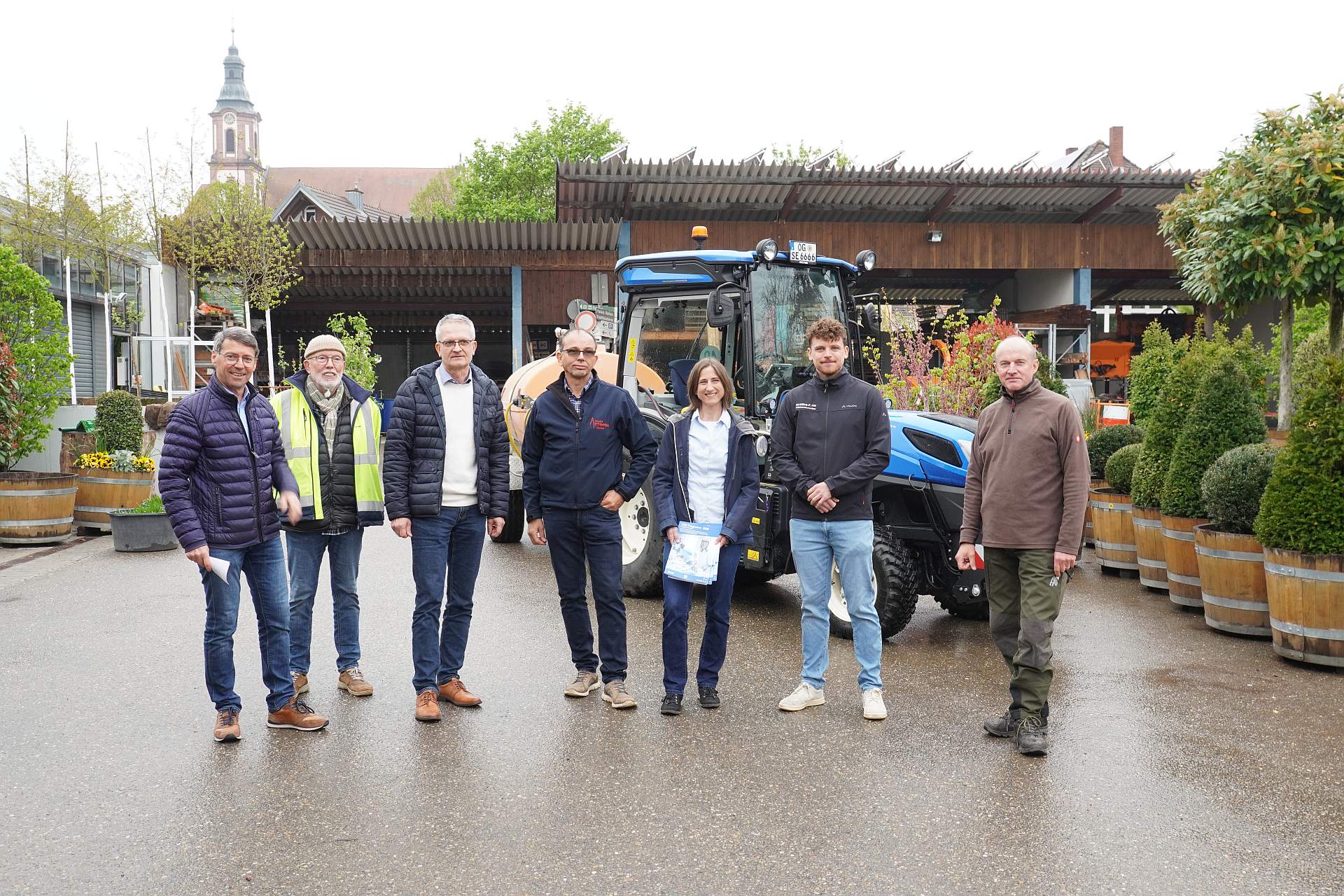 Bildquelle: Stadt Ettenheim - l. : Bürgermeister Bruno Metz, Karl-Heinz Renkenberger (Industriepark Ettenheim), Alexander Reichert (Industriepark Ettenheim), Bauhofleiter Markus Ohnemus, VHS-Außenstellenleiterin Carola Goetsch, Tobias Langenbach von der Quattro Form GmbH und Revierförster Lothar Bellert