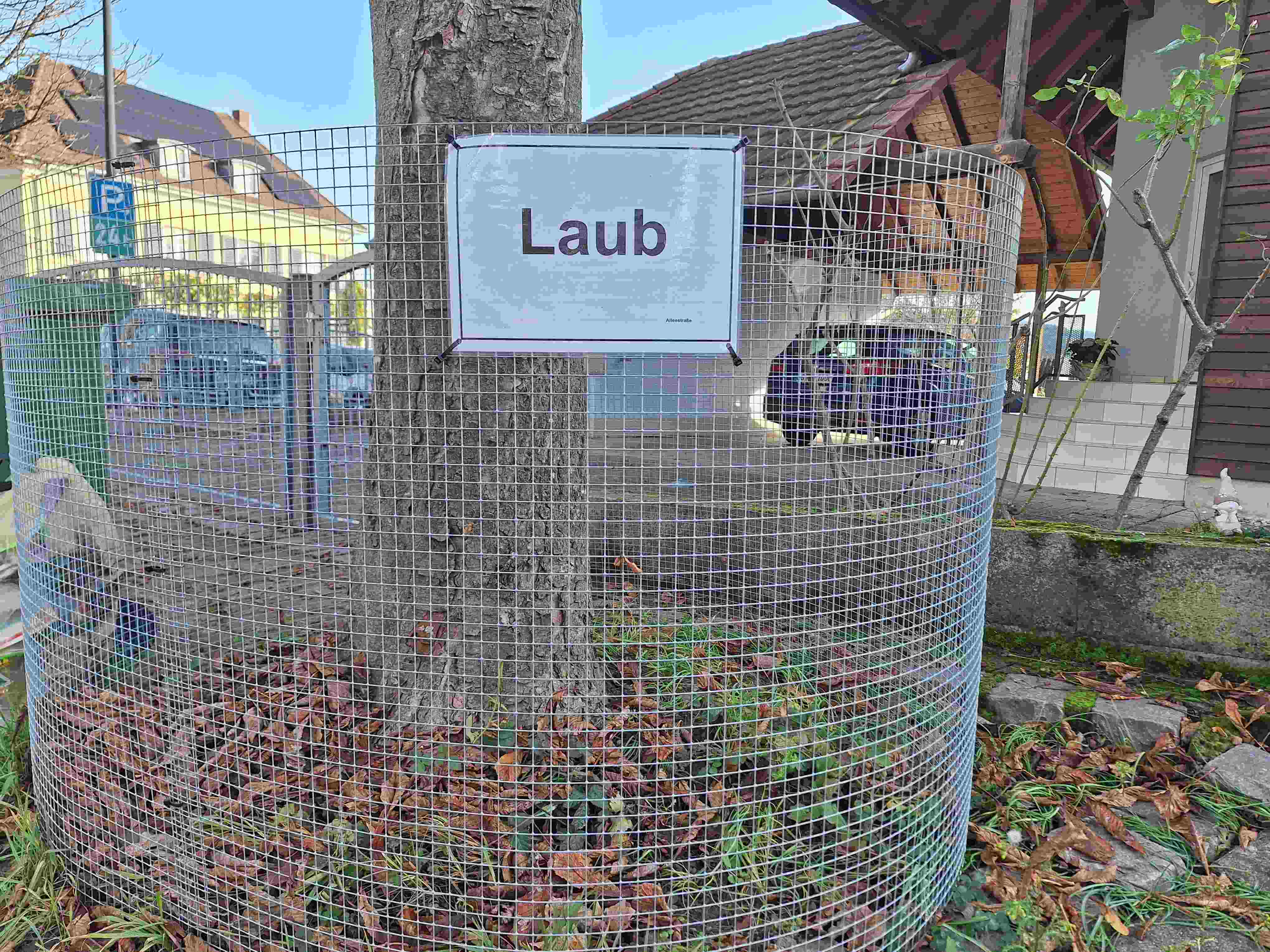 Die Körbe dienen ausschließlich zur Sammlung von Laub. Grün- oder Rasenschnitt darf nicht darin entsorgt werden, da diese bei der Leerung die Absaugung verstopfen würde. Dies sollte von den jeweiligen Grundstückseigentümerinnen und -eigentümern selbst entsorgt oder kompostiert werden.