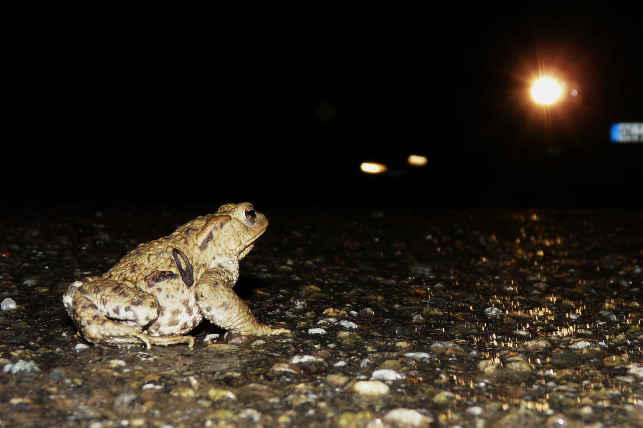 Kröte beim Überqueren der Straße