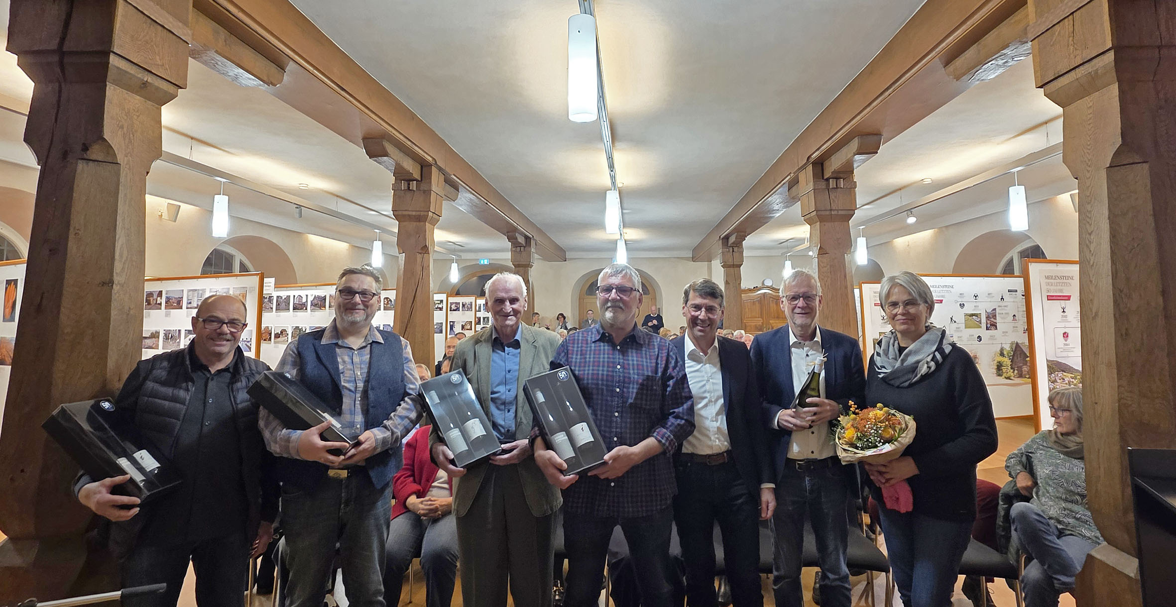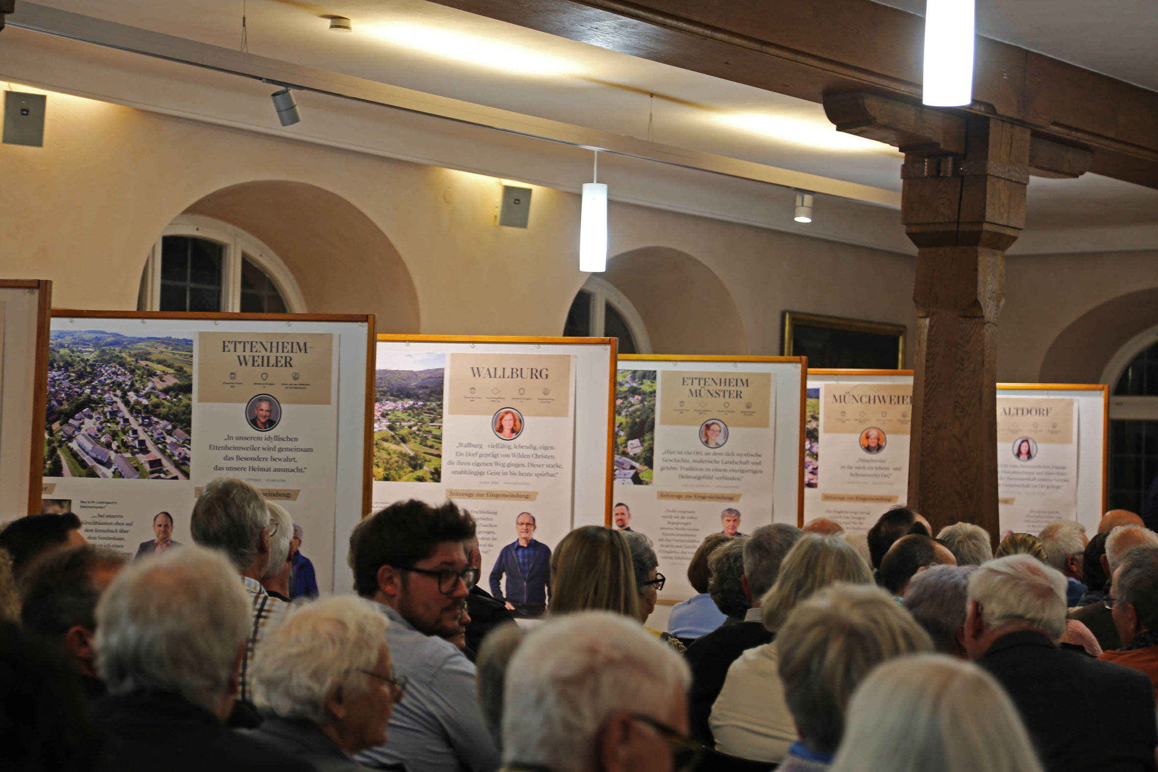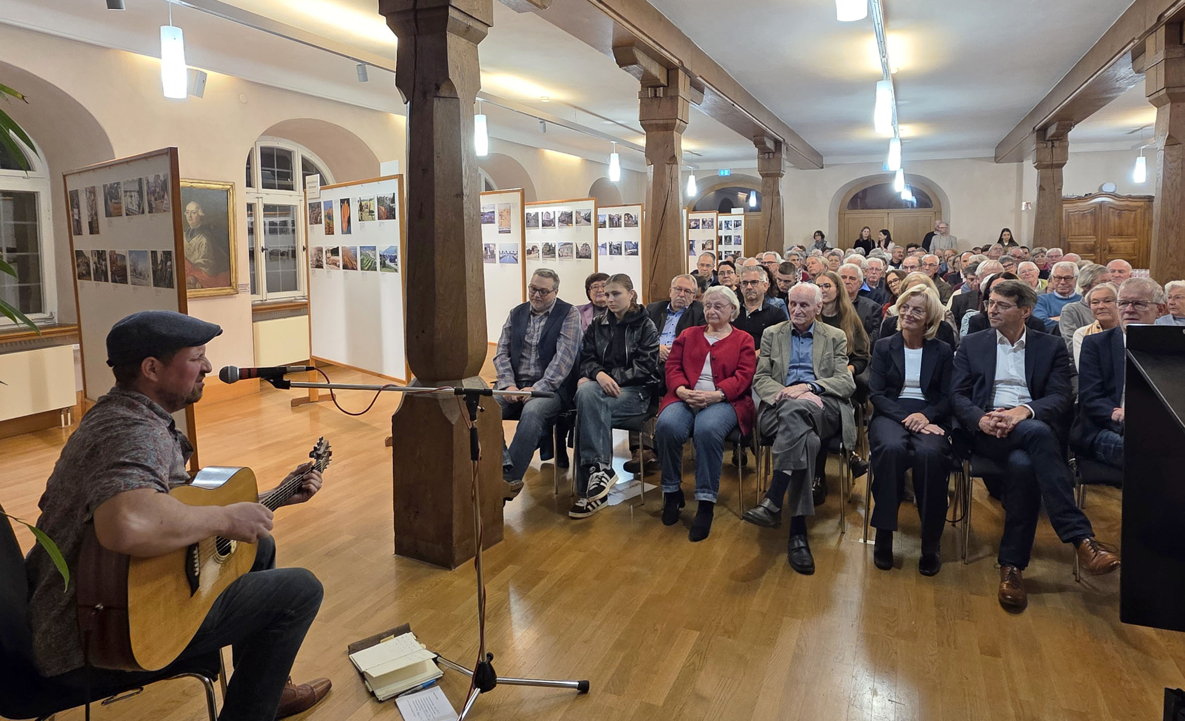 In diesem Jahr feiert die Stadt Ettenheim gemeinsam mit ihren Ortschaften ein bedeutendes Ereignis: 50 Jahre Gemeindegebietsreform. Dieser Zusammenschluss legte vor einem halben Jahrhundert den Grundstein für die gemeinsame Entwicklung der Stadt und ihrer Ortsteile und prägt das städtische Miteinander bis heute. Bereits im Frühjahr wurde das Jubiläum „50 Jahre – eine Stadt“ mit einem großen Fest gewürdigt. Zum Abschluss des Jubiläumsjahres veröffentlichte die Stadt nun ein rund 100-seitiges Jubiläumsmagazin, das am vergangenen Donnerstag im Rahmen der Vernissage zur diesjährigen Martini-Ausstellung den geladenen Gästen, die in den letzten 50 Jahre kommunalpolitische Verantwortung trugen, erstmals präsentiert wurde. Musikalisch umrahmt wurde die Vernissage von Matt Woosey, Singer- Songwriter aus Münchweier. Bürgermeister Bruno Metz begrüßte zahlreiche Gäste aus der Kommunalpolitik, Kultur und den Vereinen.