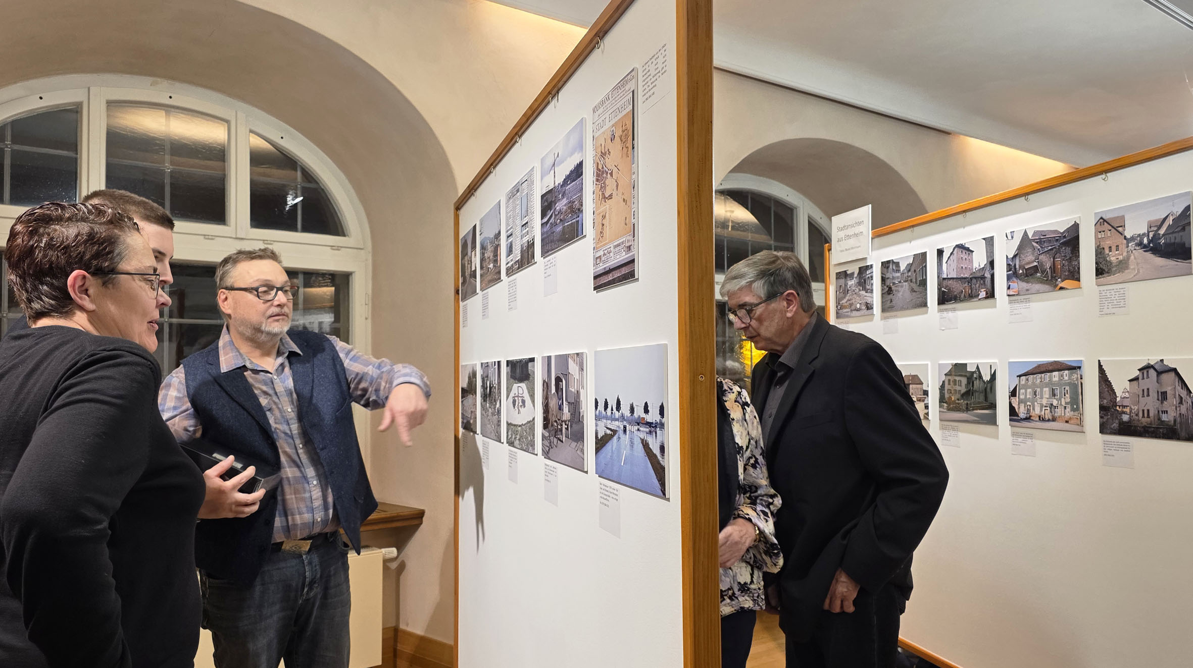 Die Ausstellung im Bürgersaal des Rathauses zeigt eindrucksvolle Bilddokumente aus fünf Jahrzehnten Stadtgeschichte. Die Fotografien stammen aus den Sammlungen von Bertold Zimmermann, Bruno Wortmann und Gerd Blattmann und lassen die Entwicklung, das Gemeinschaftsleben und prägende Momente der vergangenen 50 Jahre lebendig werden. Bertold Zimmermann, Jahrgang 1938, ist in Ettenheim geboren, in der Westlichen Ringstraße aufgewachsen und lernte Schreiner in der „Holzi“. Er macht mit Leidenschaft Fotos von alten Menschen aus der Stadt. Er dokumentiert seit Jahrzehnten und in vielen hunderten von Aufnahmen auch den Wandel seiner Heimatstadt. Bruno Wortmann, 1934 bis 2025, wurde in Ettenheim geboren und wohnte mit seiner Familie bis 1970 in der Westlichen Ringstraße. Der Postbeamte war täglich in der Stadt unterwegs. Er fotografierte Ettenheim, wie er es in den 1970er und 1980er Jahren erlebte. Sein fotografischer Nachlass ist eine wertvolle Dokumentation der jüngeren Geschichte. Gerd Blattmann, Jahrgang 1959, ist ein gebürtiger und stolzer Münchweierer und das fotografische Gedächtnis seiner Gemeinde. Er sammelt Fotos und alles aus der Geschichte des Dorfes. Mit Leidenschaft hält er historische Vorträge über die Landwirtschaft, die Gebäude von Münchweier, über die Dorffasent oder über Münchweierer Bürger.