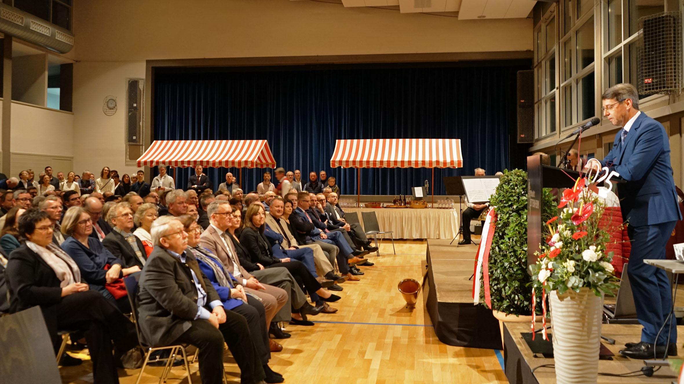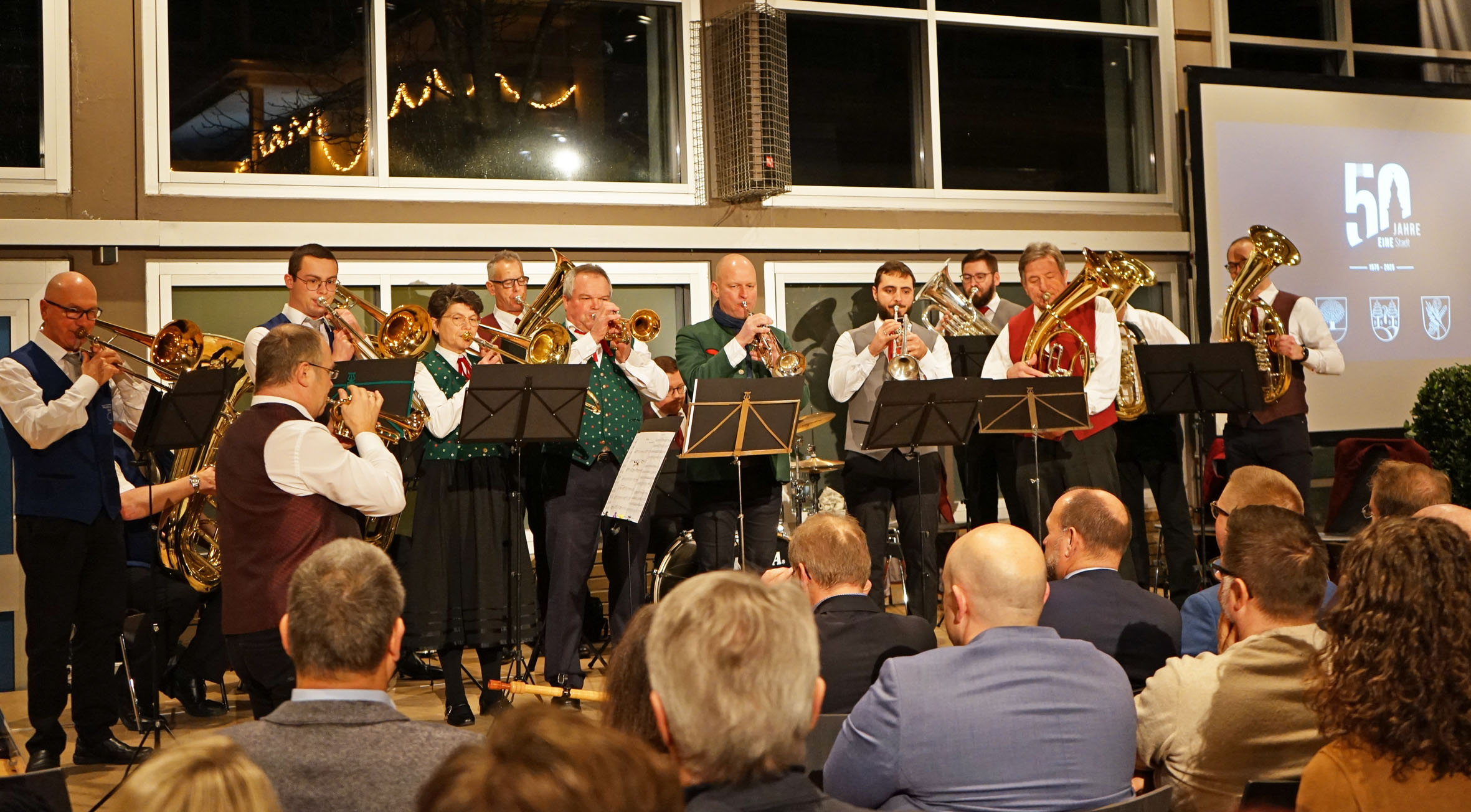 In diesem Jahr stand die Veranstaltung ganz im Zeichen des Jubiläums „50 Jahre eine Stadt“. Denn am 1.1.1975, entstand die Stadt in der heutigen Größe: Die Kernstadt mit Ettenheimweiler bekam Zuwachs von Wallburg, Münchweier, Ettenheimmünster und Altdorf. Anlässlich des Jubiläums haben Bläser aus allen Musikkapellen der Stadt unter der Leitung von Wolfgang Spengler die Gäste musikalisch begrüßt.