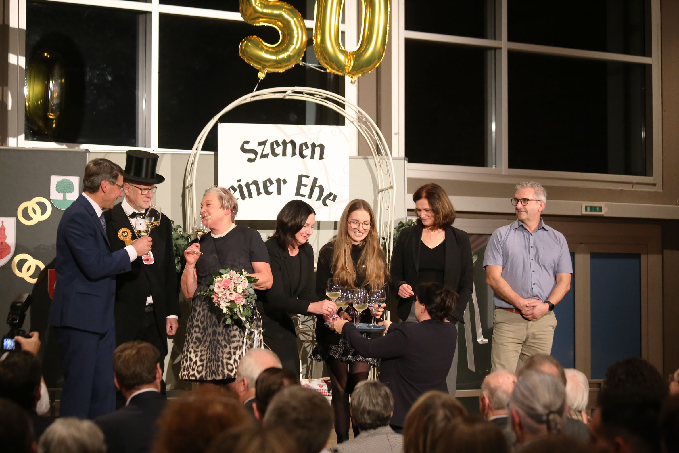 Neben Ehrungen verdienter Persönlichkeiten überraschten Gemeinderat Thomas Dees und Ortsvorsteherin Charlotte Götz mit einem augenzwinkernden Sketch zur goldenen Hochzeit der Ortschaften mit der Kernstadt Ettenheim, der bestens bei den Gästen ankam und für Lacher sorgte.