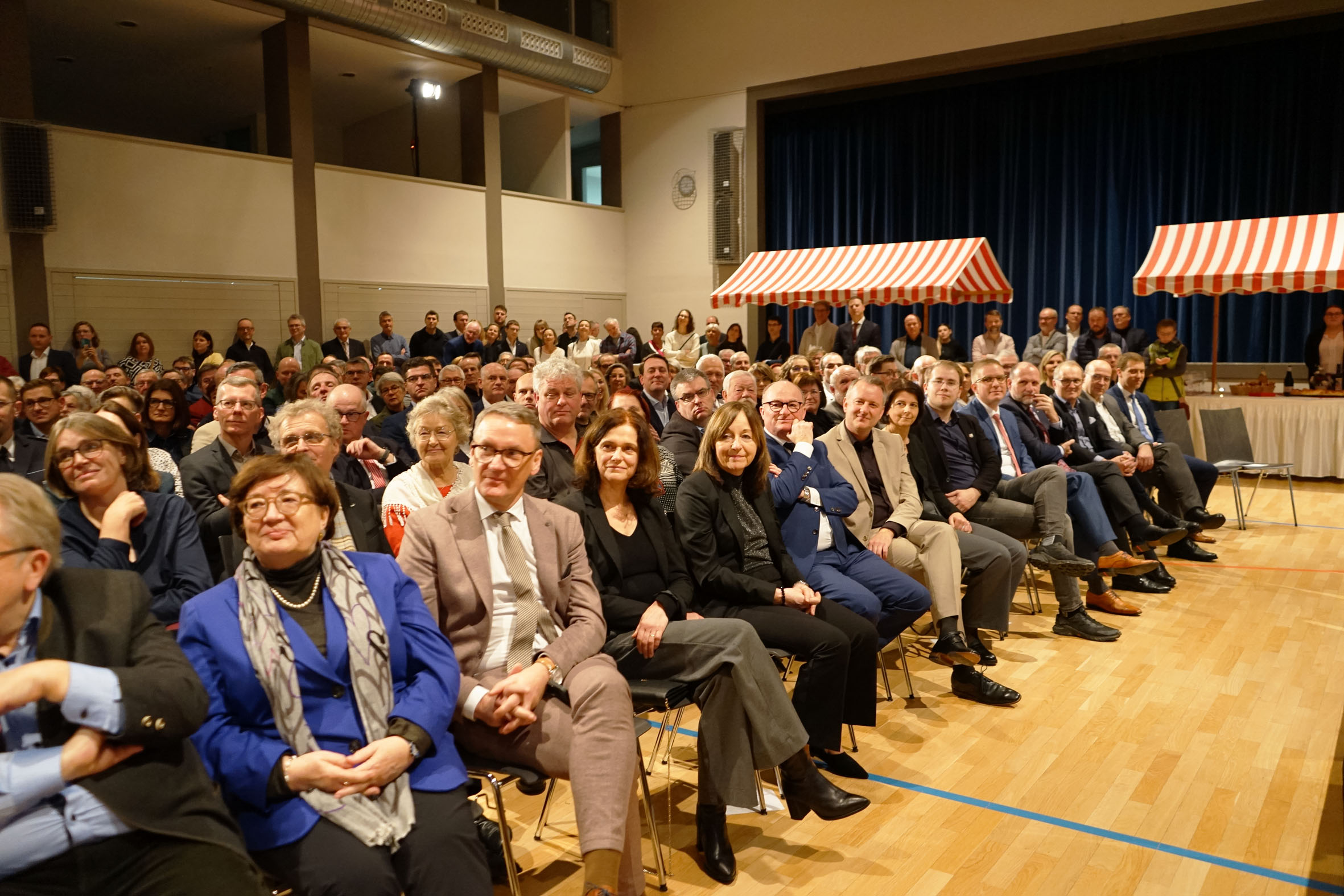 In seiner Rede betonte Metz, wie wichtig Zusammenhalt und Austausch gerade in Zeiten großer Veränderungen seien. Der Neujahrsempfang habe sich über die Jahre zu einem festen Ort der Begegnung entwickelt, und dieses Jahr rückte er nicht nur das Jubiläum der Gesamtstadt, sondern auch das vielfältige ehrenamtliche Engagement der Bürgerinnen und Bürger in den Mittelpunkt. Metz hob hervor, dass das starke Miteinander und Füreinander Ettenheim zu einem besonderen Lebensraum mache. So werden große Themen wie der Ausbau und die Angebote zur Infrastruktur, die Nachhaltigkeit, das soziale Miteinander oder die Integration gemeinsam bewältigt. Auch die gewerbliche Entwicklung lasse sich zusammen effektiver gestalten. „Jeder Teil der Stadt habe sein eigenes Gesicht und die Ortschaftsverfassung garantiere viel Nähe zu den Menschen“, stellt er fest. Synergien werden auch durch die Zusammenarbeit von Vereinen erzielt. Der kürzliche Zusammenschluss der beiden größten Feuerwehrabteilungen Kernstadt und Altdorf stärke die Einsatzfähigkeit zum Wohl der Menschen erheblich.