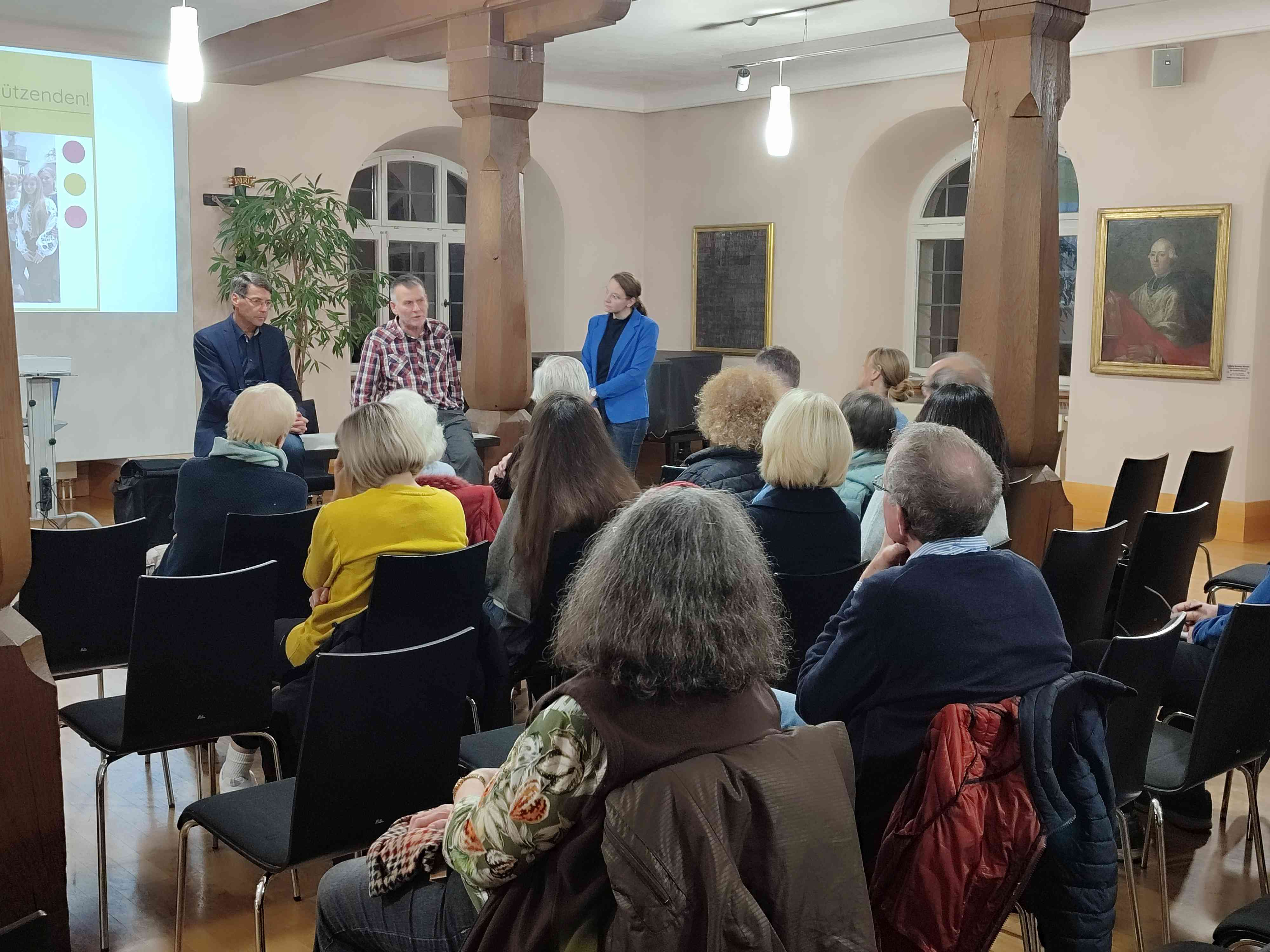 Fragen aus dem Publikum bezogen sich vor allem auf die Einstellung der ukrainischen Bevölkerung zu den Kriegshandlungen. Sowohl Metz als auch Zehnle und Herdick berichteten von deutlich überwiegender Entschlossenheit zum Kampf. „Wir können Putin nicht trauen, wir müssen kämpfen – und wir wissen, wofür wir kämpfen“, so habe man immer wieder gehört. Geschätzt werde offenbar auch die Hilfe der Bundesrepublik; gegenteilige Klagen seien ihnen jedenfalls nicht zu Ohren gekommen. Klar artikuliert worden sei in diesem Zusammenhang der Wunsch nach weitreichenden Waffen.