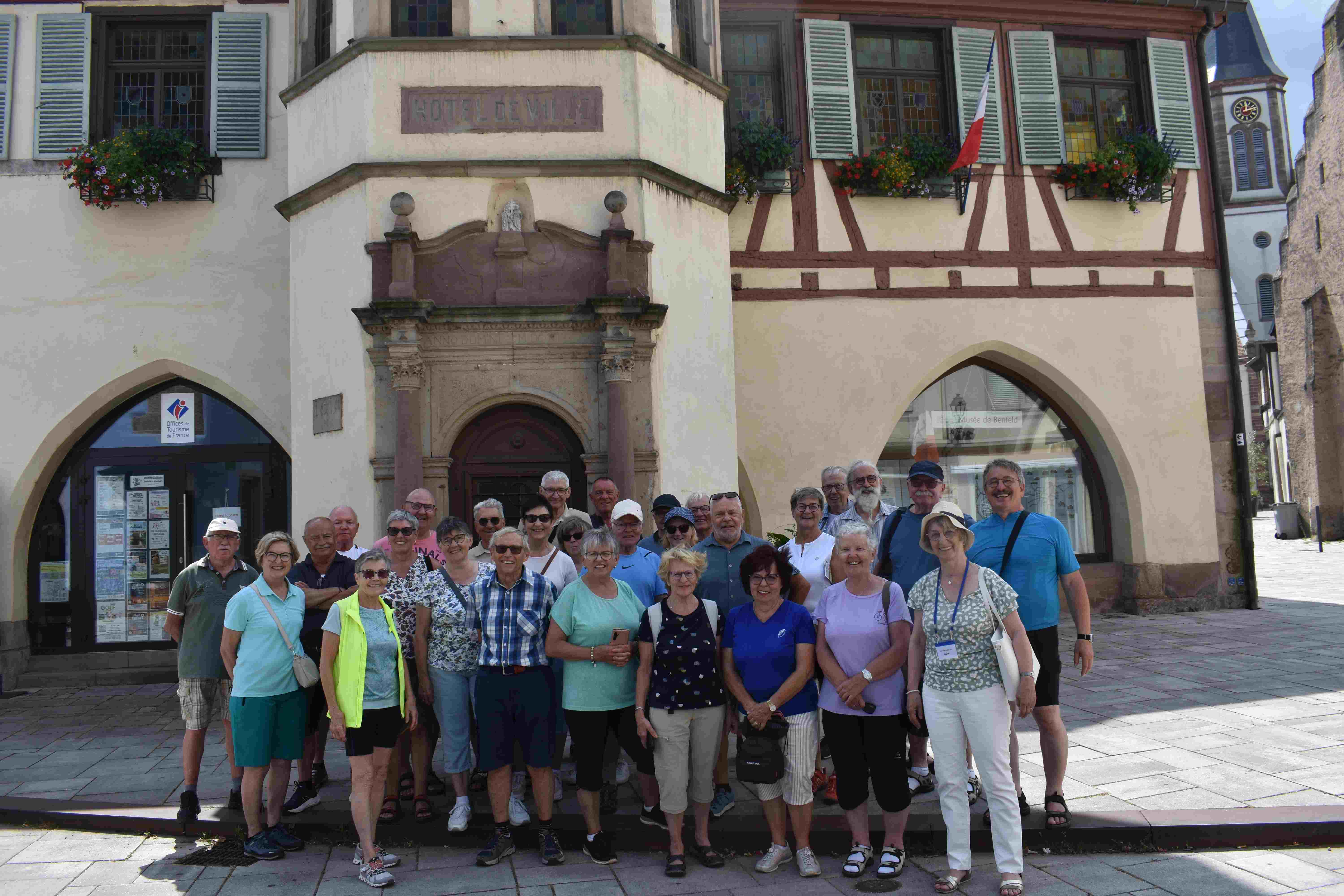 Schon seit 1970 verbindet Ettenheim und Benfeld eine lebendige Städtepartnerschaft – und so wurden die Radfahrer herzlich empfangen: Bürgermeisterstellvertreter Jean Jacques Knopf begrüßte die Gruppe vor dem prächtigen Renaissance-Rathaus von 1531. Von hier aus begann eine spannende Stadtführung, bei der nicht nur der berühmte Uhrturm mit seinen drei übereinanderliegenden Uhren beeindruckte. Im Rathausmuseum erwarteten die Besucher Ausgrabungsfunde, ein Stadtmodell aus dem Jahr 1631 und zahlreiche Dokumente der jüngeren Stadtgeschichte. Beim anschließenden Rundgang durch Benfeld stießen die Gäste auf Reste der einstigen Festungsanlagen und viele Zeugnisse der bewegten Vergangenheit der Stadt.