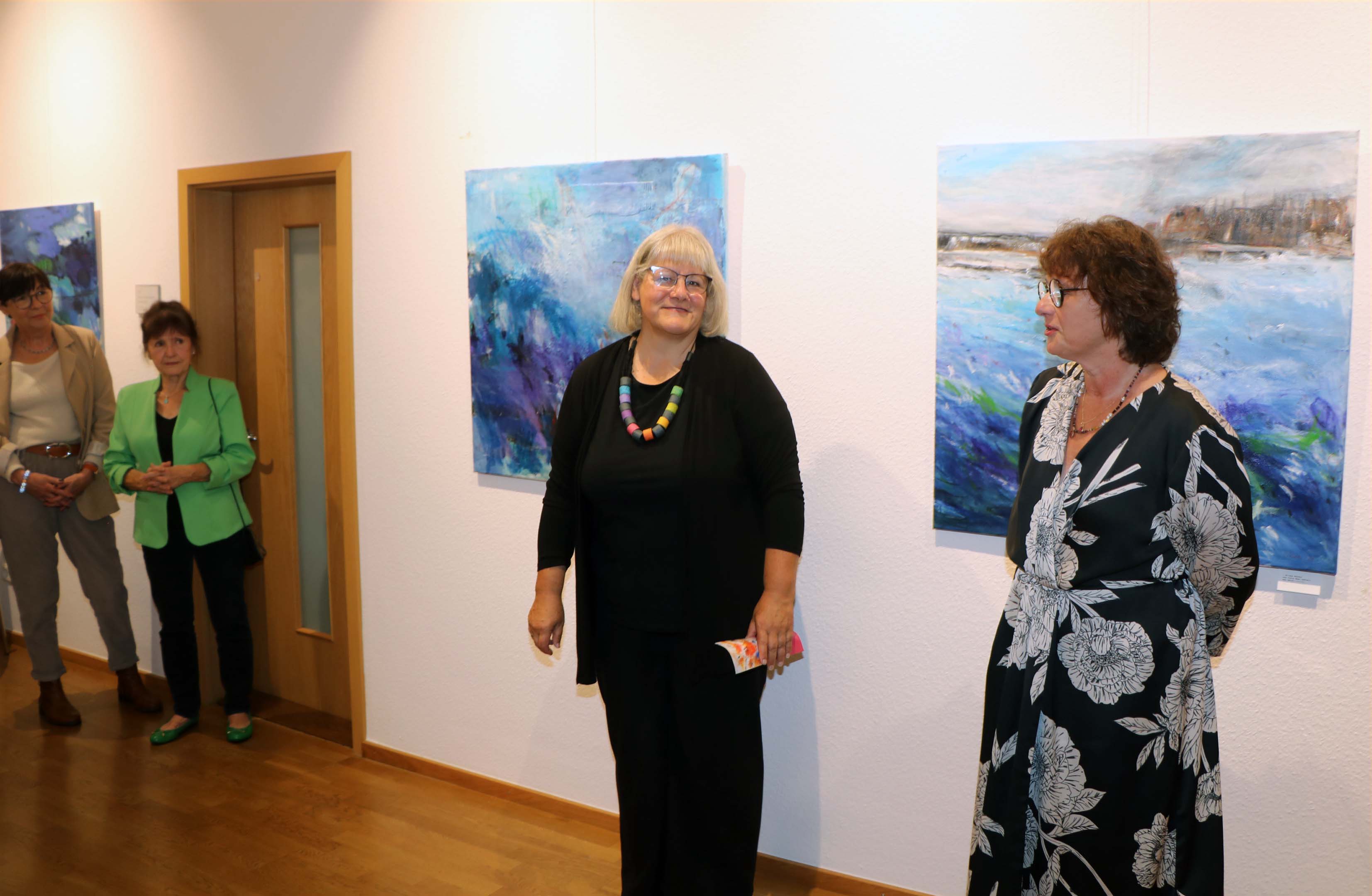 Bürgermeisterstellvertreterin Ulrike Schmidt konnte bei der Vernissage die Künstlerin und viele Gäste begrüßen, die im anschließenden Rundgang und Gespräch die Vielseitigkeit der gezeigten Bilder betrachten und auch die besondere Intensität der Bilder in Acryl auf Leinwand mit Freude zu entdecken.