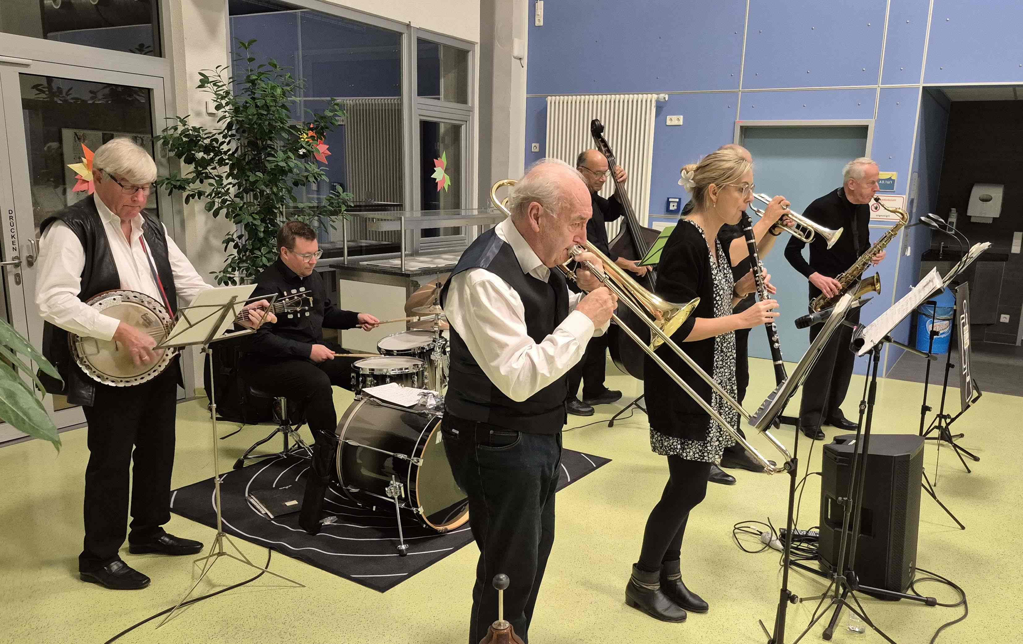 Für Unterhaltung sorgte die Jazzband Dixielarious City Stompers. Seit 13 Jahren ist sie auf Initiative von Jürgen Schmidt aktiv und seit Jahren fester Bestandteil der musikalischen Umrahmung des alljährlichen Seniorenforums. Zum Abschluss des Abends waren alle Besucher an den Stehtischen noch zum Gespräch bei Getränken und Gebäck eingeladen.