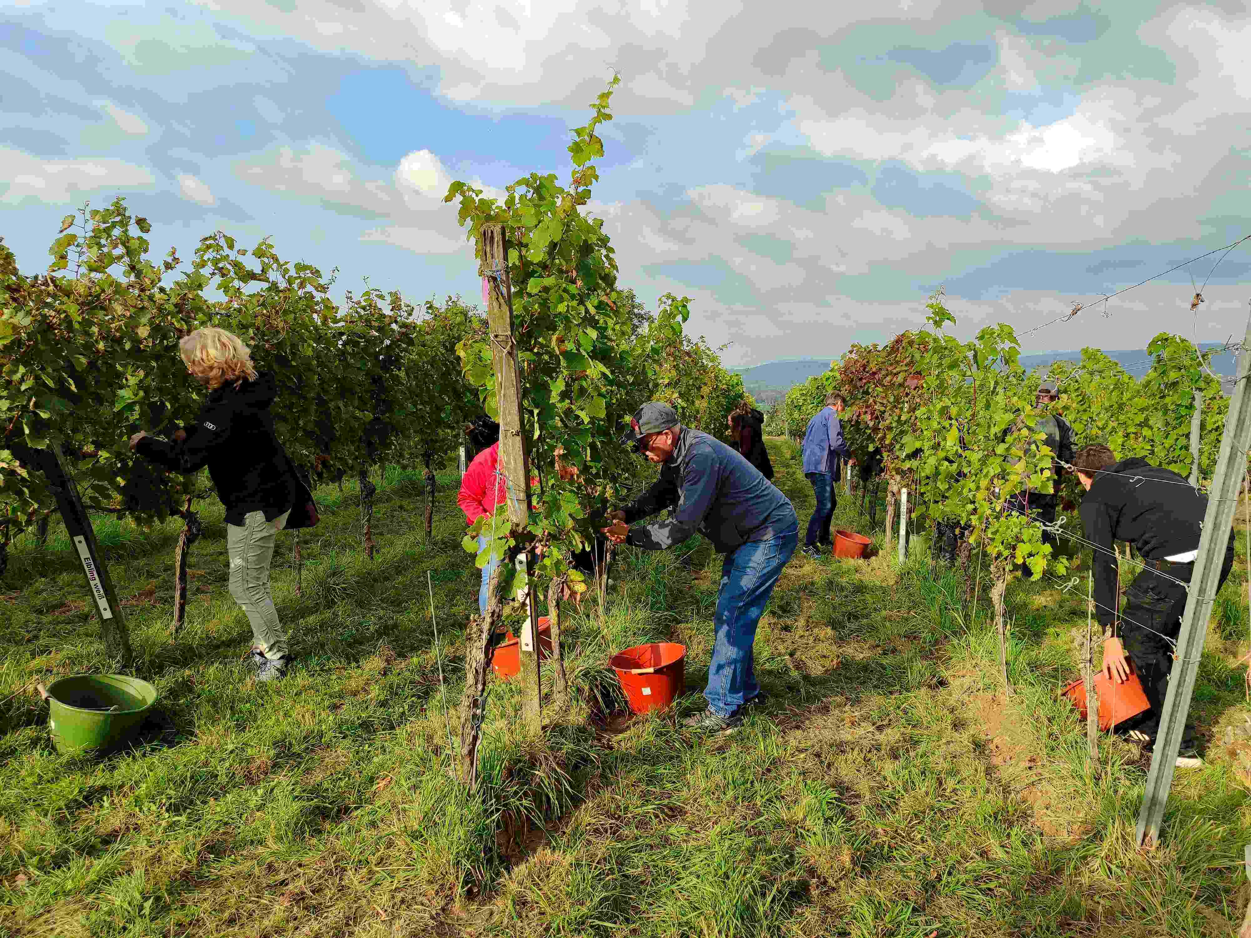 Weinfreunde, Naturinteressierte und alle Neugierigen sind herzlich eingeladen, die Bürgermeister Bruno Metz, Pascal Weber und Thomas Gedemer bei der Weinlese tatkräftig zu unterstützen. Die Teilnahme ist ein Erlebnis für die ganze Familie.